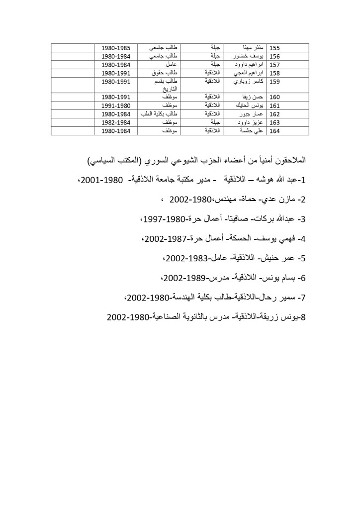 “للاطلاع:قائمة بأسماء معتقلين وملاحقين أمنيًا من أعضاء الحزب الشيوعي السوري (المكتب السياسي) في عهد النظام البائد “ Posted on 26/06/2025 بواسطة zaim999976ebdc3d5f شارك هذا الموضوع:المزيد مشاركة على واتساب (فتح في نافذة جديدة) WhatsApp Tweet Email a link to a friend (فتح في نافذة جديدة) البريد الإلكتروني اطبع (فتح في نافذة جديدة) طباعة مشاركة على تيليجرام (فتح في نافذة جديدة) Telegram مرتبط