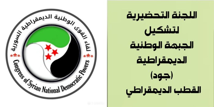 كخطوة هامة يتم استكمالها بتشكيل تحالف لكل القوى الوطنية الديمقراطية السورية وصولاً لمؤتمر إنقاذ وطني عام سوريا لم تكن يوماً في وضع تحتاج فيه لتوحيد وتنسيق وتنظيم جهود السوريين كما هو اليوم، وانطلاقاً من هذه الضرورة الوطنية الملحة كانت هذه الخطوة التي نأمل أن تكون أساسية تستكمل بخطوات باتجاه توحيد جهود كل القوى الوطنية الديمقراطية … متابعة القراءة بيان إشهار تحالف اللجنة التحضيرية لتشكيل الجبهة الوطنية الديمقراطية (جود) / القطب الديمقراطي ولقاء القوى الوطنية الديمقراطية السورية