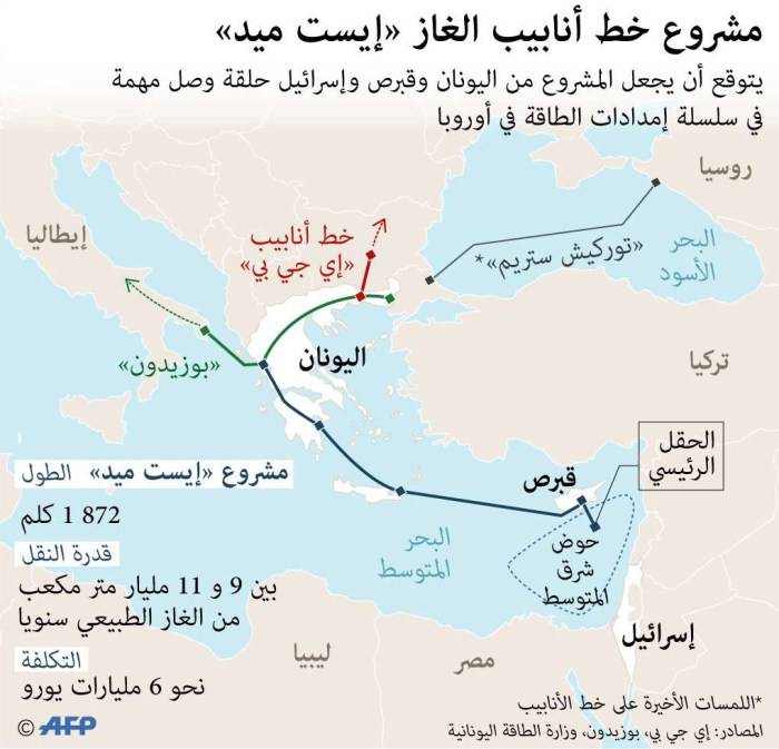قدر معهد الدراسات الجيولوجي الأمريكي USGS، احتياطات الغاز والنفط في الحوض الشرقي للمتوسط، بحوالي 345 تريليون قدم مكعّب من الغاز، منها 223 تريليون قدم مكعّب من الغاز في حوض دلتا النيل، و122 تريليون قدم مكعّب من الغاز في منطقة حوض المشرق، قبالة شواطئ قبرص و"إسرائيل" ولبنان وسورية وحوالي 3 ونصف مليار برميل من النفط. يحتل … متابعة القراءة مشروع خط أنابيب الغاز “إيست ميد”