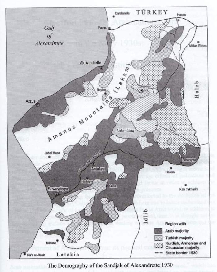 نحن الآن في عام ١٩٣٦ عندما كان لواء اسكندرون لا يزال أرضاً سوريّة تحت الانتداب الفرنسي ولو إلى حين. الأسطر التالية مقتبسة ومختزلة عن مقال للدكتورة دلال الأرسوزي (ابنة أخ المفكّر زكي الأرسوزي). من الناحية الجغرافيّة بلغت مساحة اللواء ٤٨٠٥ كيلومتر مربّع وعدد سكّانه وقتها ٢٤٠٠٠٠ نسمة (توزيعهم الديموغرافي عام ١٩٣٠ على الخارطة الملحقة). فلننظر … متابعة القراءة لواء اسكندرون قبل هاتاي